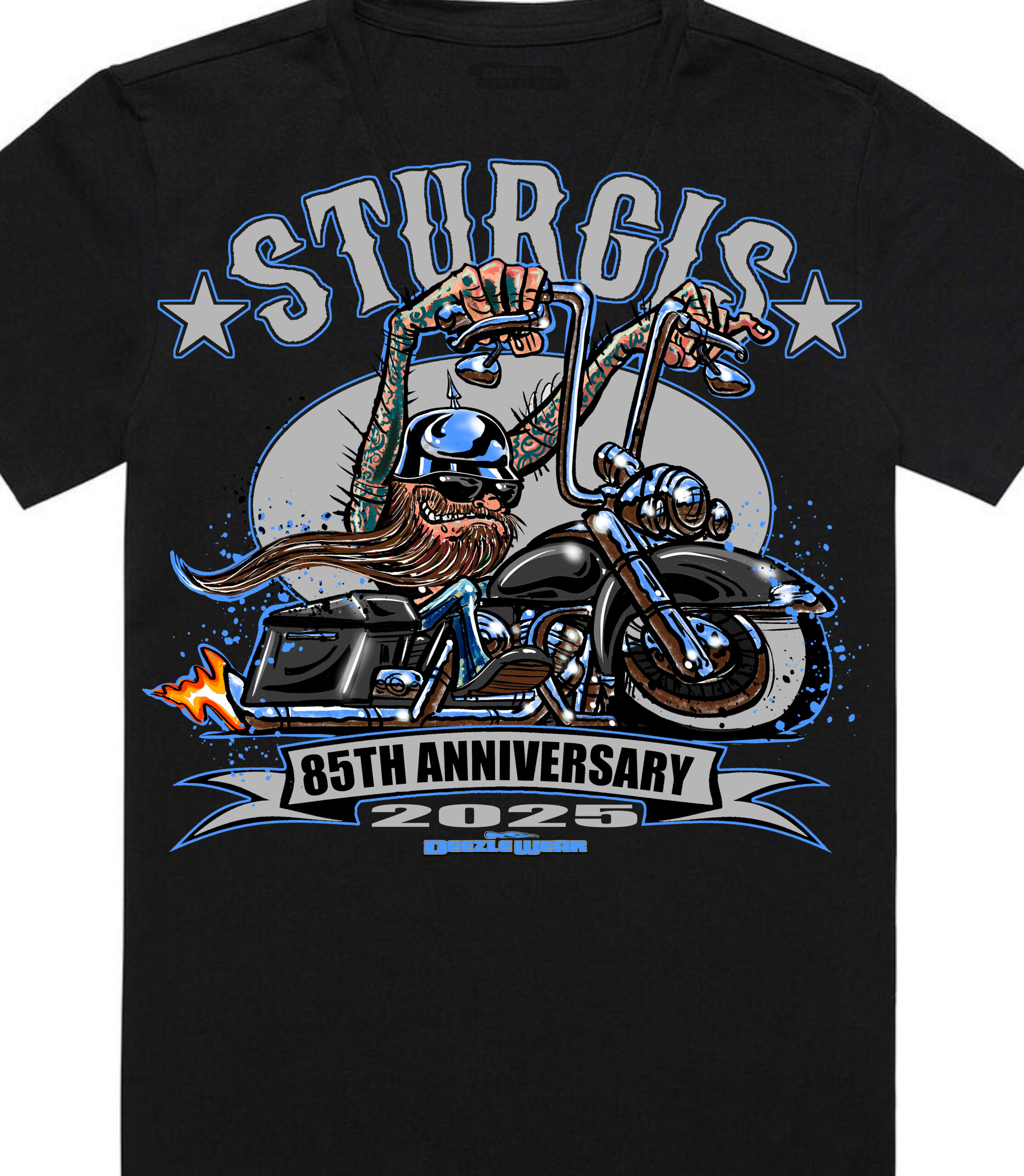 Celebrate the Sturgis 2025 85th Anniversary with an exclusive design by Thomas Estrada, a professionally licensed artist known for his work with Rat Fink, Evel Knievel, Don Garlits, and Count’s Kustoms.